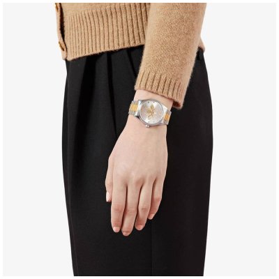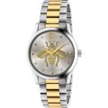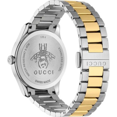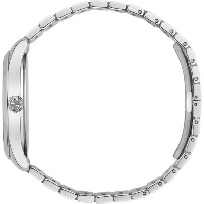 Dit Gucci horloge heeft een kast gemaakt van Staal zilver met een diameter van 38 mm en is voorzien van een Staal zilver band. In de kast bevindt zich een Ronda kwaliteitsuurwerk en is afgewerkt met Saffierglas.
