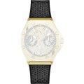 Dit Guess horlogebandje is gemaakt van siliconen en wordt aan het horloge bevestigd door middel van bandpennen. De band heeft een breedte van 23 mm en wordt gesloten door middel van een gesp. De band heeft geen rechte aanzet wat betekent dat deze band alleen geschikt is voor de horloges die hieronder worden vermeld.