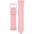 Dit Guess horlogebandje is gemaakt van siliconen en wordt aan het horloge bevestigd door middel van bandpennen. De band heeft een breedte van 24 mm en wordt gesloten door middel van een gesp. De band heeft geen rechte aanzet wat betekent dat deze band alleen geschikt is voor de horloges die hieronder worden vermeld.