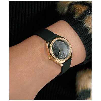 Dit Guess horloge heeft een kast gemaakt van Staal zilver met een diameter van 30 mm en is voorzien van een Rubber band. In de kast bevindt zich een Seiko kwaliteitsuurwerk en is afgewerkt met Mineraalglas.