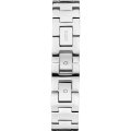 Dit Guess horlogebandje is gemaakt van roestvrij staal en wordt aan het horloge bevestigd door middel van bandpennen. De band heeft een breedte van 14 mm en wordt gesloten door middel van een milanese sluiting. De band heeft geen rechte aanzet wat betekent dat deze band alleen geschikt is voor de horloges die hieronder worden vermeld.