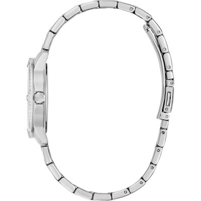 Dit Guess horloge heeft een kast gemaakt van Staal zilver met een diameter van 32 mm en is voorzien van een Staal zilver band. In de kast bevindt zich een Seiko kwaliteitsuurwerk en is afgewerkt met Mineraalglas.