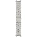 Dit Guess horlogebandje is gemaakt van roestvrij staal en wordt aan het horloge bevestigd door middel van bandpennen. De band heeft een breedte van 24 mm en wordt gesloten door middel van een vouwsluiting met drukknoppen. De band heeft geen rechte aanzet wat betekent dat deze band alleen geschikt is voor de horloges die hieronder worden vermeld.