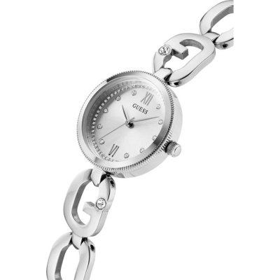 Dit Guess horloge heeft een kast gemaakt van Staal zilver met een diameter van 30 mm en is voorzien van een Staal zilver band.