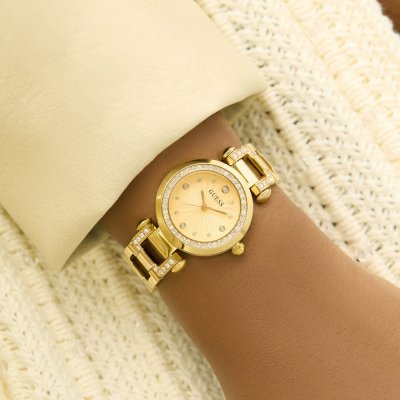 Dit Guess horloge heeft een kast gemaakt van Staal zilver met een diameter van 30 mm en is voorzien van een Staal zilver band. In de kast bevindt zich een Seiko kwaliteitsuurwerk en is afgewerkt met Mineraalglas.