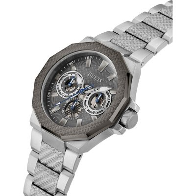 Dit Guess horloge heeft een kast gemaakt van Staal zilver met een diameter van 45 mm en is voorzien van een Staal zilver band. In de kast bevindt zich een Seiko Instruments Inc. kwaliteitsuurwerk en is afgewerkt met Mineraalglas.