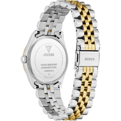 Dit Guess horloge heeft een kast gemaakt van Staal zilver met een diameter van 34 mm en is voorzien van een Staal zilver band. In de kast bevindt zich een Seiko Instruments Inc. kwaliteitsuurwerk en is afgewerkt met Mineraalglas.