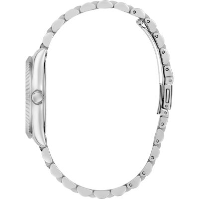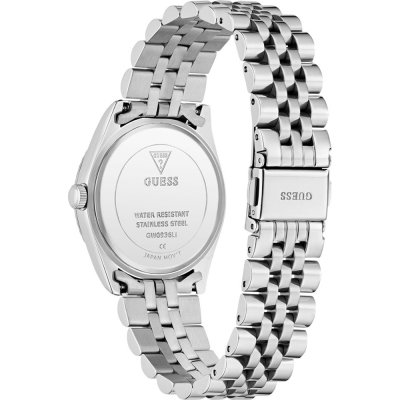 Dit Guess horloge heeft een kast gemaakt van Staal zilver met een diameter van 34 mm en is voorzien van een Staal zilver band.