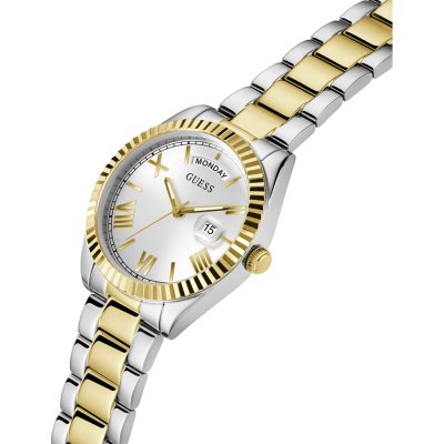 Dit Guess horloge heeft een kast gemaakt van Staal zilver met een diameter van 36 mm en is voorzien van een metaal band.