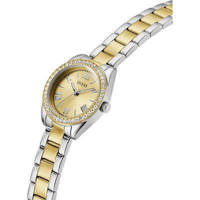 Dit Guess horloge heeft een kast gemaakt van Staal zilver met een diameter van 30 mm en is voorzien van een Staal zilver band. In de kast bevindt zich een Seiko kwaliteitsuurwerk en is afgewerkt met Mineraalglas.
