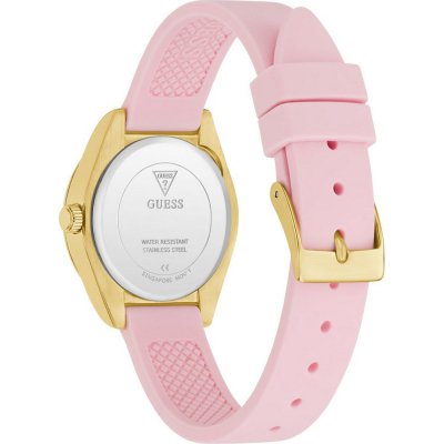 Dit Guess horloge heeft een kast gemaakt van Staal zilver met een diameter van 30 mm en is voorzien van een Rubber band. In de kast bevindt zich een Seiko kwaliteitsuurwerk en is afgewerkt met Mineraalglas.