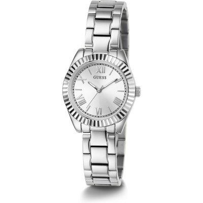 Dit Guess horloge heeft een kast gemaakt van Staal zilver met een diameter van 30 mm en is voorzien van een Staal zilver band.