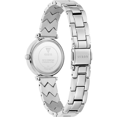 Dit Guess horloge heeft een kast gemaakt van Staal zilver met een diameter van 26 mm en is voorzien van een Staal zilver band. In de kast bevindt zich een Seiko kwaliteitsuurwerk en is afgewerkt met Mineraalglas.