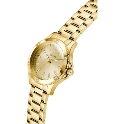 Dit Guess horloge heeft een kast gemaakt van Staal zilver met een diameter van 35 mm en is voorzien van een Staal zilver band. In de kast bevindt zich een Seiko kwaliteitsuurwerk en is afgewerkt met Mineraalglas.