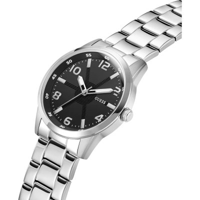 Dit Guess horloge heeft een kast gemaakt van Staal zilver met een diameter van 42 mm en is voorzien van een Staal zilver band.