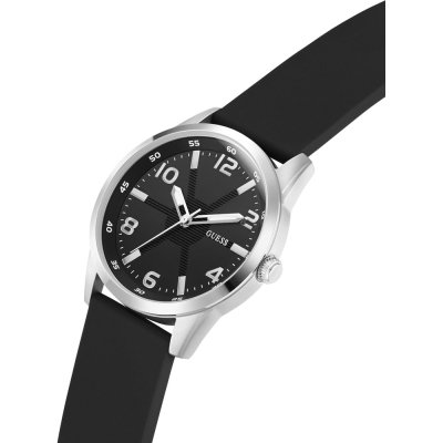 Dit Guess horloge heeft een kast gemaakt van Staal zilver met een diameter van 42 mm en is voorzien van een Rubber band.