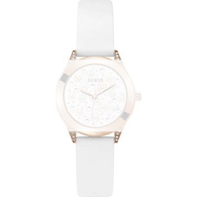 Dit Guess horlogebandje is gemaakt van siliconen en wordt aan het horloge bevestigd door middel van bandpennen. De band heeft een breedte van 16 mm en wordt gesloten door middel van een gesp. De band heeft een rechte aanzet wat betekent dat deze band geschikt is voor alle Guess horloges met een rechte aanzet.