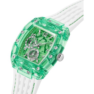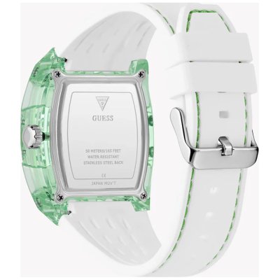 Dit Guess horloge heeft een kast gemaakt van Resin met een diameter van 43 mm en is voorzien van een Rubber band.