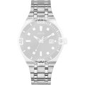 Dit Guess horlogebandje is gemaakt van metaal en wordt aan het horloge bevestigd door middel van stalen pennen. De band heeft een breedte van 20 mm en wordt gesloten door middel van een vouwsluiting met drukknoppen. De band heeft geen rechte aanzet wat betekent dat deze band alleen geschikt is voor de horloges die hieronder worden vermeld.