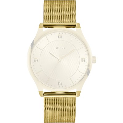 Dit Guess horlogebandje is gemaakt van roestvrij staal en wordt aan het horloge bevestigd door middel van bandpennen. De band heeft een breedte van 22 mm en wordt gesloten door middel van een milanese sluiting. De band heeft een rechte aanzet wat betekent dat deze band geschikt is voor alle Guess horloges met een rechte aanzet.