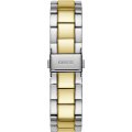 Dit Guess horlogebandje is gemaakt van metaal en wordt aan het horloge bevestigd door middel van bandpennen. De band heeft een breedte van 20 mm en wordt gesloten door middel van een vouwsluiting. De band heeft geen rechte aanzet wat betekent dat deze band alleen geschikt is voor de horloges die hieronder worden vermeld.