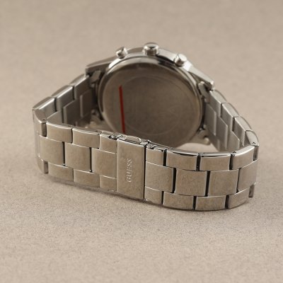 Dit Guess horloge heeft een kast gemaakt van Staal zilver met een diameter van 40 mm en is voorzien van een Staal zilver band. In de kast bevindt zich een Seiko Instruments Inc. kwaliteitsuurwerk en is afgewerkt met Mineraalglas.