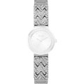 Dit Guess horlogebandje is gemaakt van roestvrij staal en wordt aan het horloge bevestigd door middel van stalen pennen. De band heeft een breedte van 14 mm en wordt gesloten door middel van een sieraadsluiting. De band heeft geen rechte aanzet wat betekent dat deze band alleen geschikt is voor de horloges die hieronder worden vermeld.