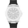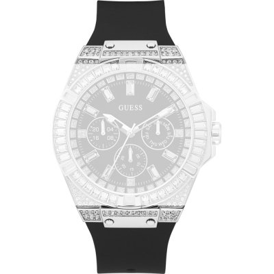 Dit Guess horlogebandje is gemaakt van siliconen en wordt aan het horloge bevestigd door middel van bandpennen. De band heeft een breedte van 29 mm en wordt gesloten door middel van een gesp. De band heeft geen rechte aanzet wat betekent dat deze band alleen geschikt is voor de horloges die hieronder worden vermeld.