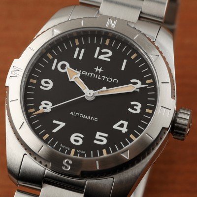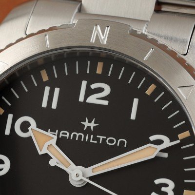 De pijlwijzers met kunstmatig gepatineerde lumen vormen het middelpunt van de aandacht op dit klassieke veldhorloge. Met zijn duidelijk afleesbare wijzerplaat en eenvoudige kompasring is de Khaki Field Expedition een outdoorhorloge in militaire stijl zonder franje, dat met 37 mm geschikt is voor zowel mannen als vrouwen. Het horloge is verkrijgbaar in verschillende kleuren en met een roestvrijstalen horlogeband, leren horlogeband en NATO-band. We raden aan de kleurvariant van uw keuze aan te schaffen en dan een extra band te bestellen voor een andere stijl of functie.