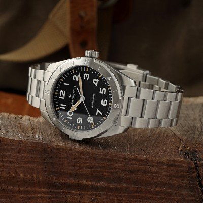 Met de Khaki Field Expedition is het mogelijk te navigeren met behulp van de zon. Zoek een zonovergoten plek en houd het horloge plat. Als u op het noordelijk halfrond bent, richt de uurwijzer op de zon en draai de lunette zo dat de "S" (zuid) halverwege tussen de uurwijzer en de 12-uurspositie staat. Hierdoor wordt de bezel ingesteld en kunt u de andere richtingen (noord, oost, west) aflezen op de schaal van de bezel. Op het zuidelijk halfrond moet de noordelijke markering halverwege tussen de uurwijzer en 12 uur staan.