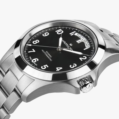 Dit Hamilton horloge heeft een kast gemaakt van Staal zilver met een diameter van 40 mm en is voorzien van een Staal zilver band. In de kast bevindt zich een ETA kwaliteitsuurwerk en is afgewerkt met Enkelvoudig ontspiegeld saffierglasglas.