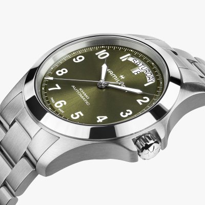 Dit Hamilton horloge heeft een kast gemaakt van Staal zilver met een diameter van 40 mm en is voorzien van een Staal zilver band. In de kast bevindt zich een ETA kwaliteitsuurwerk en is afgewerkt met Enkelvoudig ontspiegeld saffierglasglas.