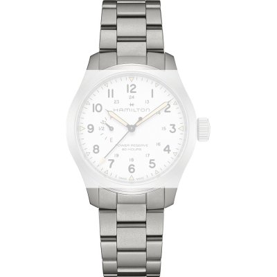Dit Hamilton horlogebandje is gemaakt van roestvrij staal en wordt aan het horloge bevestigd door middel van bandpennen. De band heeft een breedte van 20 mm en wordt gesloten door middel van een vouwsluiting met drukknoppen. De band heeft geen rechte aanzet wat betekent dat deze band alleen geschikt is voor de horloges die hieronder worden vermeld.