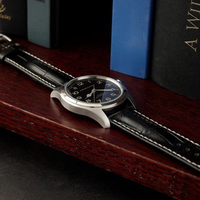 Dit Hamilton horloge heeft een kast gemaakt van Staal zilver met een diameter van 42 mm en is voorzien van een leer band. In de kast bevindt zich een ETA kwaliteitsuurwerk en is afgewerkt met Saffierglas.