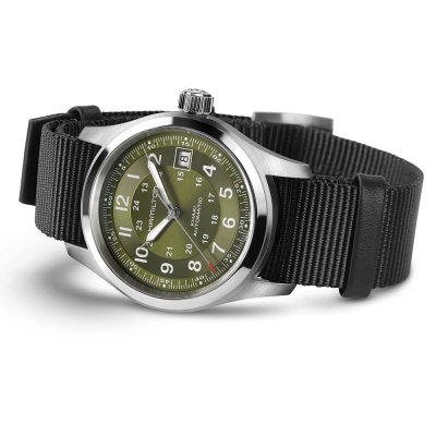 Dit Hamilton horloge heeft een kast gemaakt van Staal zilver met een diameter van 38 mm en is voorzien van een textiel band. In de kast bevindt zich een ETA kwaliteitsuurwerk en is afgewerkt met Saffierglas.