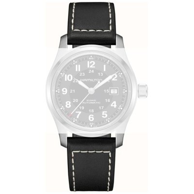 Dit Hamilton horlogebandje is gemaakt van leer en wordt aan het horloge bevestigd door middel van bandpennen. De band heeft een breedte van 22 mm en wordt gesloten door middel van een gesp. De band heeft een rechte aanzet wat betekent dat deze band geschikt is voor alle Hamilton horloges met een rechte aanzet.