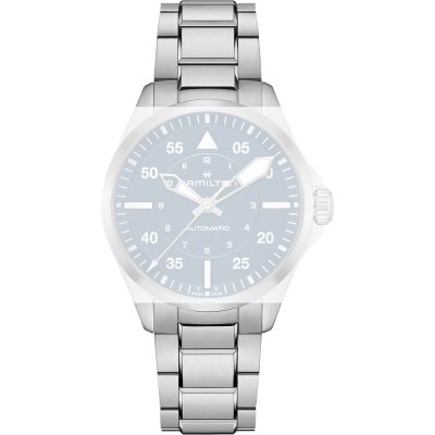 Dit Hamilton horlogebandje is gemaakt van roestvrij staal en wordt aan het horloge bevestigd door middel van quick release bandpennen. De band heeft een breedte van 20 mm en wordt gesloten door middel van een vouwsluiting met drukknoppen. De band heeft geen rechte aanzet wat betekent dat deze band alleen geschikt is voor de horloges die hieronder worden vermeld.