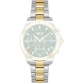 Dit Hugo Boss horlogebandje is gemaakt van roestvrij staal en wordt aan het horloge bevestigd door middel van bandpennen. De band heeft een breedte van 17 mm en wordt gesloten door middel van een vouwsluiting met drukknoppen. De band heeft geen rechte aanzet wat betekent dat deze band alleen geschikt is voor de horloges die hieronder worden vermeld.