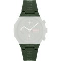 Dit Hugo Boss horlogebandje is gemaakt van siliconen en wordt aan het horloge bevestigd door middel van bandpennen. De band heeft een breedte van 22 mm en wordt gesloten door middel van een gesp. De band heeft geen rechte aanzet wat betekent dat deze band alleen geschikt is voor de horloges die hieronder worden vermeld.