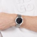 Dit Hugo Boss horloge heeft een kast gemaakt van Staal zilver met een diameter van 42 mm en is voorzien van een Staal zilver band. In de kast bevindt zich een Seiko kwaliteitsuurwerk en is afgewerkt met Mineraalglas.