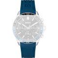 Dit Hugo Boss horlogebandje is gemaakt van siliconen en wordt aan het horloge bevestigd door middel van bandpennen. De band heeft een breedte van 22 mm en wordt gesloten door middel van een gesp. De band heeft geen rechte aanzet wat betekent dat deze band alleen geschikt is voor de horloges die hieronder worden vermeld.