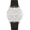 Dit Hugo Boss horlogebandje is gemaakt van siliconen en wordt aan het horloge bevestigd door middel van bandpennen. De band heeft een breedte van 22 mm en wordt gesloten door middel van een gesp. De band heeft geen rechte aanzet wat betekent dat deze band alleen geschikt is voor de horloges die hieronder worden vermeld.
