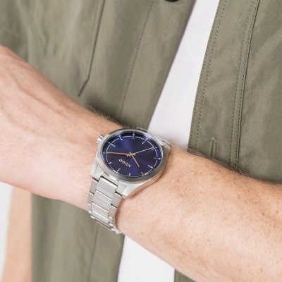 Dit Hugo Boss horloge heeft een kast gemaakt van Staal zilver met een diameter van 41 mm en is voorzien van een Staal zilver band. In de kast bevindt zich een Seiko kwaliteitsuurwerk en is afgewerkt met Mineraalglas.