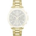 Dit Hugo Boss horlogebandje is gemaakt van roestvrij staal en wordt aan het horloge bevestigd door middel van bandpennen. De band heeft een breedte van 22 mm en wordt gesloten door middel van een vouwsluiting met drukknoppen. De band heeft geen rechte aanzet wat betekent dat deze band alleen geschikt is voor de horloges die hieronder worden vermeld.