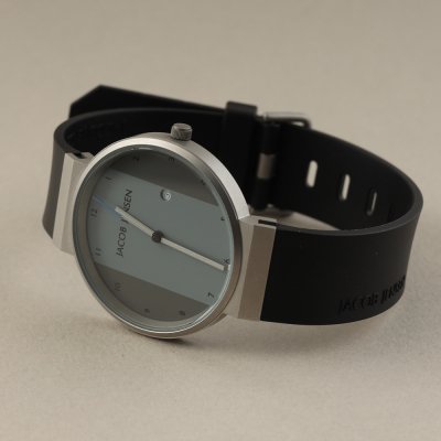 Dit Jacob Jensen horloge heeft een kast gemaakt van Staal zilver met een diameter van 35 mm en is voorzien van een Rubber band.