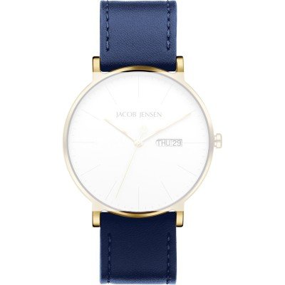 Dit Jacob Jensen horlogebandje is gemaakt van vegan leer en wordt aan het horloge bevestigd door middel van bandpennen. De band heeft een breedte van 20 mm en wordt gesloten door middel van een gesp. De band heeft een rechte aanzet wat betekent dat deze band geschikt is voor alle Jacob Jensen horloges met een rechte aanzet.