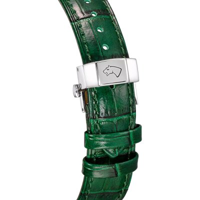 Dit Jaguar horloge heeft een kast gemaakt van Staal zilver met een diameter van 40 mm en is voorzien van een leer band. In de kast bevindt zich een Ronda kwaliteitsuurwerk en is afgewerkt met Saffierglas.