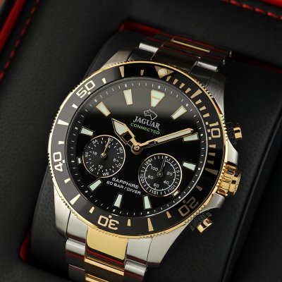Dit Jaguar horloge heeft een kast gemaakt van Staal zilver met een diameter van 45 mm en is voorzien van een Staal zilver band. In de kast bevindt zich een Kronaby kwaliteitsuurwerk en is afgewerkt met Saffierglas.