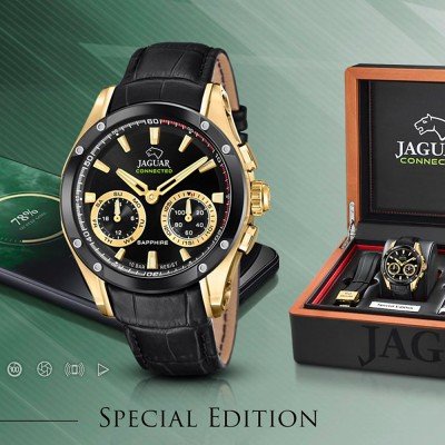 Dit Jaguar horloge heeft een kast gemaakt van Staal zilver met een diameter van 45 mm en is voorzien van een leer band. In de kast bevindt zich een Kronaby kwaliteitsuurwerk en is afgewerkt met Saffierglas.