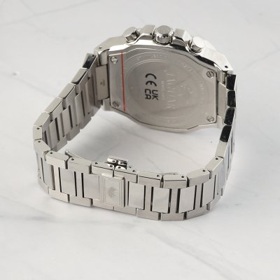 Dit Jaguar horloge heeft een kast gemaakt van Staal zilver met een diameter van 42.9 mm en is voorzien van een Staal zilver band. In de kast bevindt zich een Ronda kwaliteitsuurwerk en is afgewerkt met Saffierglas.